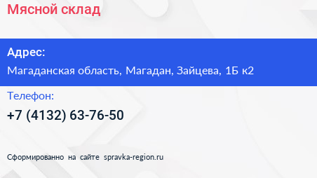 Мясной склад по адресу Магаданская область, Магадан, Зайцева, 1Б к2 в дальнейшем Организация, размещена в следующих категориях: