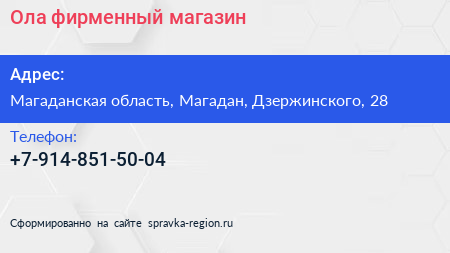 Ола, фирменный магазин по адресу Магаданская область, Магадан, Дзержинского, 28 в дальнейшем Организация, размещена в следующих категориях: