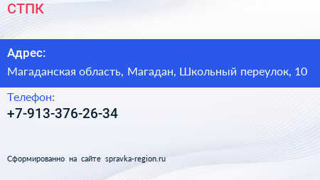 СТПК по адресу Магаданская область, Магадан, Школьный переулок, 10 в дальнейшем Организация, размещена в следующих категориях: