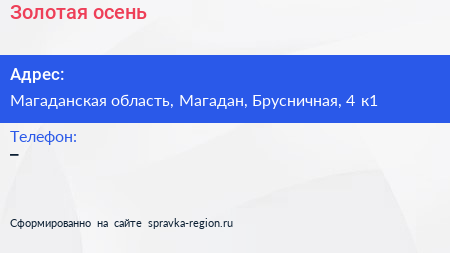 Золотая осень по адресу Магаданская область, Магадан, Брусничная, 4 к1 в дальнейшем Организация, размещена в следующих категориях: