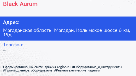 Black Aurum по адресу Магаданская область, Магадан, Колымское шоссе 6 км, 19д в дальнейшем Организация, размещена в следующих категориях: