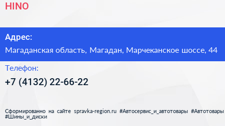 HINO по адресу Магаданская область, Магадан, Марчеканское шоссе, 44 в дальнейшем Организация, размещена в следующих категориях: