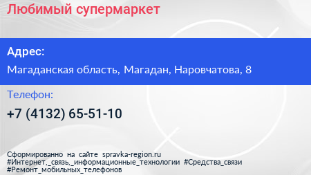 Любимый, супермаркет по адресу Магаданская область, Магадан, Наровчатова, 8 в дальнейшем Организация, размещена в следующих категориях: