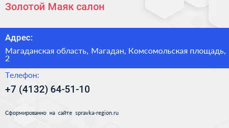 Золотой Маяк, салон по адресу Магаданская область, Магадан, Комсомольская площадь, 2 в дальнейшем Организация, размещена в следующих категориях: