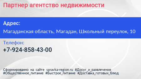 Партнер, агентство недвижимости по адресу Магаданская область, Магадан, Школьный переулок, 10 в дальнейшем Организация, размещена в следующих категориях: