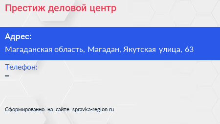 Престиж, деловой центр по адресу Магаданская область, Магадан, Якутская улица, 63 в дальнейшем Организация, размещена в следующих категориях: