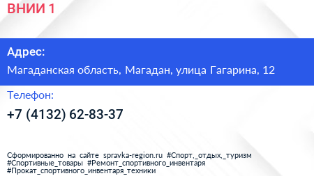 ВНИИ-1 по адресу Магаданская область, Магадан, улица Гагарина, 12 в дальнейшем Организация, размещена в следующих категориях: