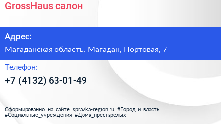 GrossHaus, салон по адресу Магаданская область, Магадан, Портовая, 7 в дальнейшем Организация, размещена в следующих категориях: