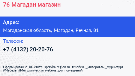 76 Магадан, магазин по адресу Магаданская область, Магадан, Речная, 81 в дальнейшем Организация, размещена в следующих категориях:
