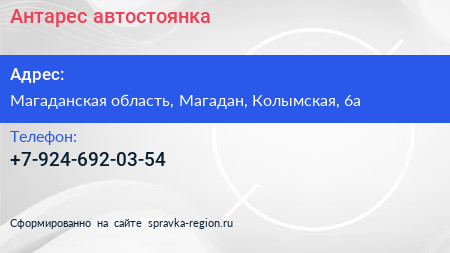 Антарес, автостоянка по адресу Магаданская область, Магадан, Колымская, 6а в дальнейшем Организация, размещена в следующих категориях: