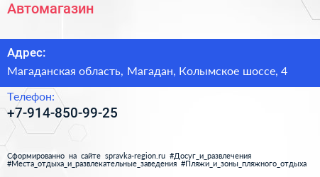 Автомагазин по адресу Магаданская область, Магадан, Колымское шоссе, 4 в дальнейшем Организация, размещена в следующих категориях: