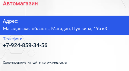 Автомагазин по адресу Магаданская область, Магадан, Пушкина, 19а к3 в дальнейшем Организация, размещена в следующих категориях: