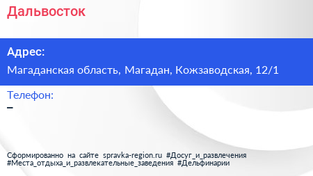 Дальвосток по адресу Магаданская область, Магадан, Кожзаводская, 12/1 в дальнейшем Организация, размещена в следующих категориях: