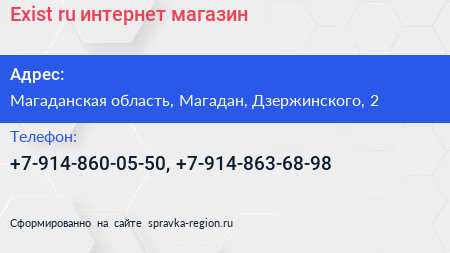 Exist.ru, интернет-магазин по адресу Магаданская область, Магадан, Дзержинского, 2 в дальнейшем Организация, размещена в следующих категориях: