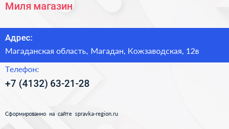Миля, магазин по адресу Магаданская область, Магадан, Кожзаводская, 12в в дальнейшем Организация, размещена в следующих категориях:
