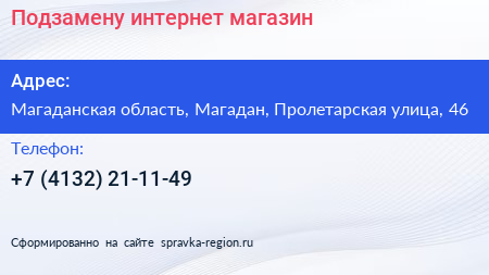 Подзамену, интернет-магазин по адресу Магаданская область, Магадан, Пролетарская улица, 46 в дальнейшем Организация, размещена в следующих категориях: