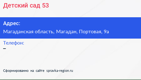 Детский сад №53 по адресу Магаданская область, Магадан, Портовая, 9а в дальнейшем Организация, размещена в следующих категориях: