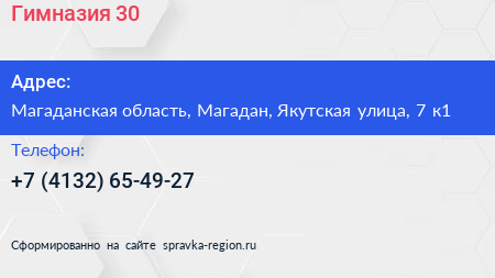 Гимназия №30 по адресу Магаданская область, Магадан, Якутская улица, 7 к1 в дальнейшем Организация, размещена в следующих категориях:
