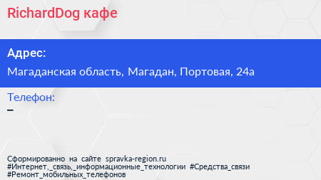 RichardDog, кафе по адресу Магаданская область, Магадан, Портовая, 24а в дальнейшем Организация, размещена в следующих категориях:
