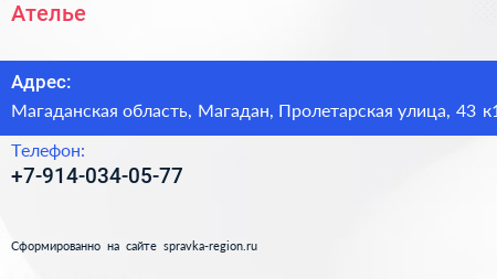 Ателье по адресу Магаданская область, Магадан, Пролетарская улица, 43 к1 в дальнейшем Организация, размещена в следующих категориях: