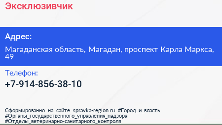 Эксклюзивчик по адресу Магаданская область, Магадан, проспект Карла Маркса, 49 в дальнейшем Организация, размещена в следующих категориях: