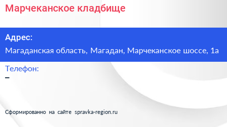 Марчеканское кладбище по адресу Магаданская область, Магадан, Марчеканское шоссе, 1а в дальнейшем Организация, размещена в следующих категориях: