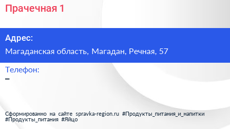 Прачечная №1 по адресу Магаданская область, Магадан, Речная, 57 в дальнейшем Организация, размещена в следующих категориях: