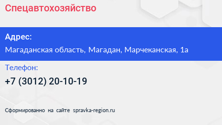 Спецавтохозяйство по адресу Магаданская область, Магадан, Марчеканская, 1а в дальнейшем Организация, размещена в следующих категориях: