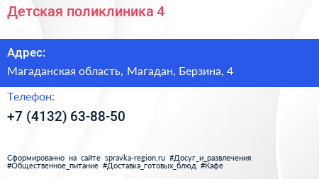 Детская поликлиника №4 по адресу Магаданская область, Магадан, Берзина, 4 в дальнейшем Организация, размещена в следующих категориях: