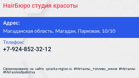 HairБюро, студия красоты по адресу Магаданская область, Магадан, Парковая, 10/10 в дальнейшем Организация, размещена в следующих категориях: