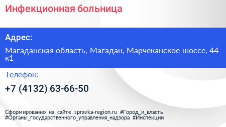 Инфекционная больница по адресу Магаданская область, Магадан, Марчеканское шоссе, 44 к1 в дальнейшем Организация, размещена в следующих категориях: