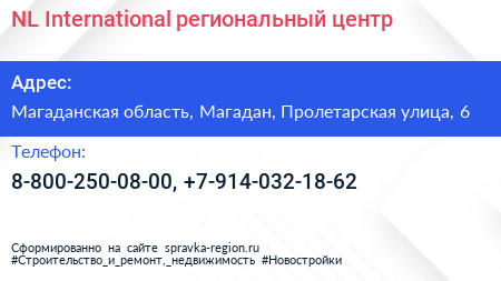 NL International, региональный центр по адресу Магаданская область, Магадан, Пролетарская улица, 6 в дальнейшем Организация, размещена в следующих категориях: