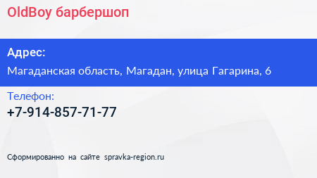 OldBoy, барбершоп по адресу Магаданская область, Магадан, улица Гагарина, 6 в дальнейшем Организация, размещена в следующих категориях: