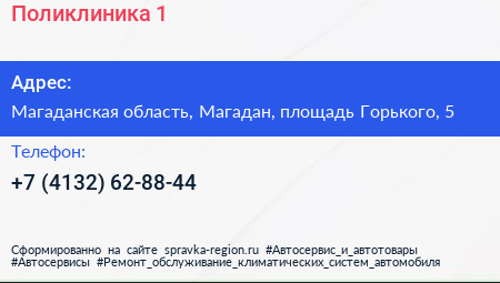 Поликлиника №1 по адресу Магаданская область, Магадан, площадь Горького, 5 в дальнейшем Организация, размещена в следующих категориях: