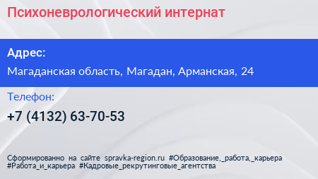 Психоневрологический интернат по адресу Магаданская область, Магадан, Арманская, 24 в дальнейшем Организация, размещена в следующих категориях: