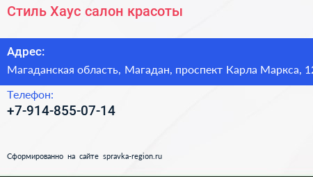 Стиль Хаус, салон красоты по адресу Магаданская область, Магадан, проспект Карла Маркса, 12 в дальнейшем Организация, размещена в следующих категориях: