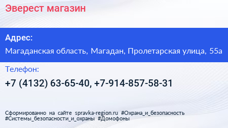 Эверест, магазин по адресу Магаданская область, Магадан, Пролетарская улица, 55а в дальнейшем Организация, размещена в следующих категориях: