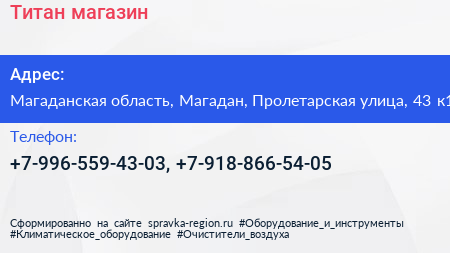 Титан, магазин по адресу Магаданская область, Магадан, Пролетарская улица, 43 к1 в дальнейшем Организация, размещена в следующих категориях: