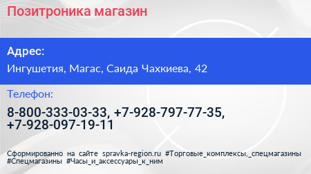 Позитроника, магазин по адресу Ингушетия, Магас, Саида Чахкиева, 42 в дальнейшем Организация, размещена в следующих категориях: