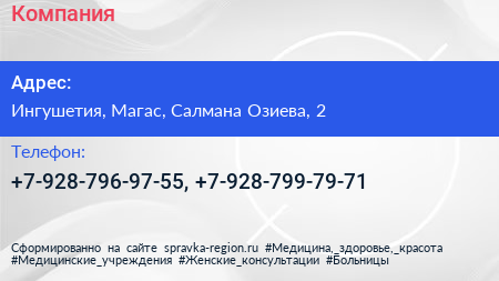 Компания по адресу Ингушетия, Магас, Салмана Озиева, 2 в дальнейшем Организация, размещена в следующих категориях: