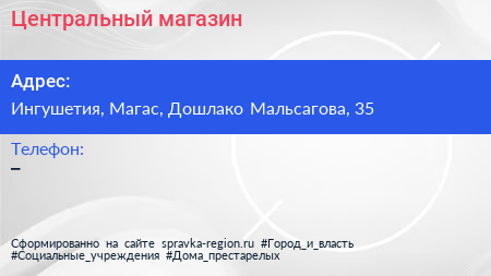 Центральный, магазин по адресу Ингушетия, Магас, Дошлако Мальсагова, 35 в дальнейшем Организация, размещена в следующих категориях: