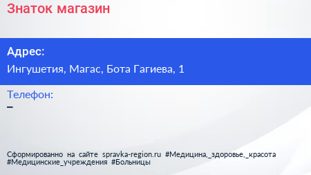 Знаток, магазин по адресу Ингушетия, Магас, Бота Гагиева, 1 в дальнейшем Организация, размещена в следующих категориях: