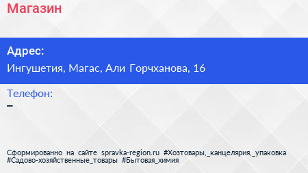 Магазин по адресу Ингушетия, Магас, Али Горчханова, 16 в дальнейшем Организация, размещена в следующих категориях: