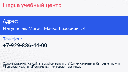 Lingua, учебный центр по адресу Ингушетия, Магас, Мачко Базоркина, 4 в дальнейшем Организация, размещена в следующих категориях: