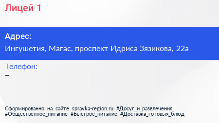 Лицей №1 по адресу Ингушетия, Магас, проспект Идриса Зязикова, 22а в дальнейшем Организация, размещена в следующих категориях: