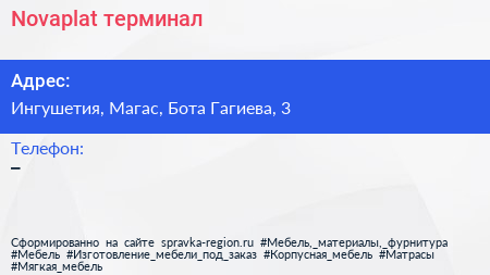 Novaplat, терминал по адресу Ингушетия, Магас, Бота Гагиева, 3 в дальнейшем Организация, размещена в следующих категориях: