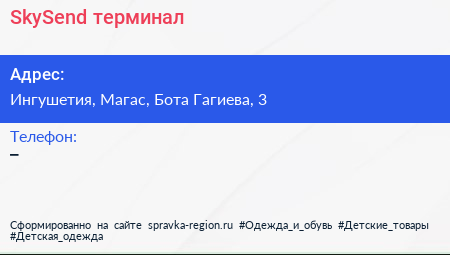 SkySend, терминал по адресу Ингушетия, Магас, Бота Гагиева, 3 в дальнейшем Организация, размещена в следующих категориях: