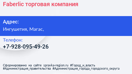 Faberlic, торговая компания по адресу Ингушетия, Магас, в дальнейшем Организация, размещена в следующих категориях: