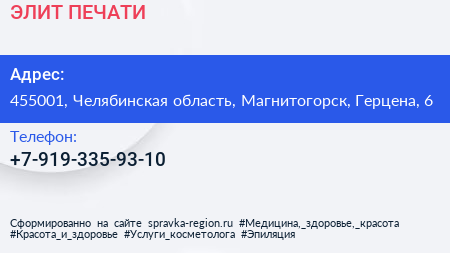 ЭЛИТ ПЕЧАТИ по адресу 455001, Челябинская область, Магнитогорск, Герцена, 6 в дальнейшем Организация, размещена в следующих категориях:
