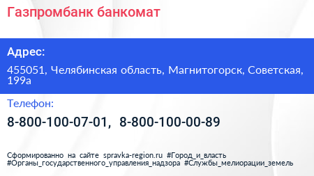 Газпромбанк, банкомат по адресу 455051, Челябинская область, Магнитогорск, Советская, 199а в дальнейшем Организация, размещена в следующих категориях: